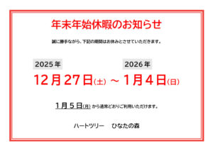誠に勝手ながら、12/27(土)~ 1/4(日)はお休みとさ…